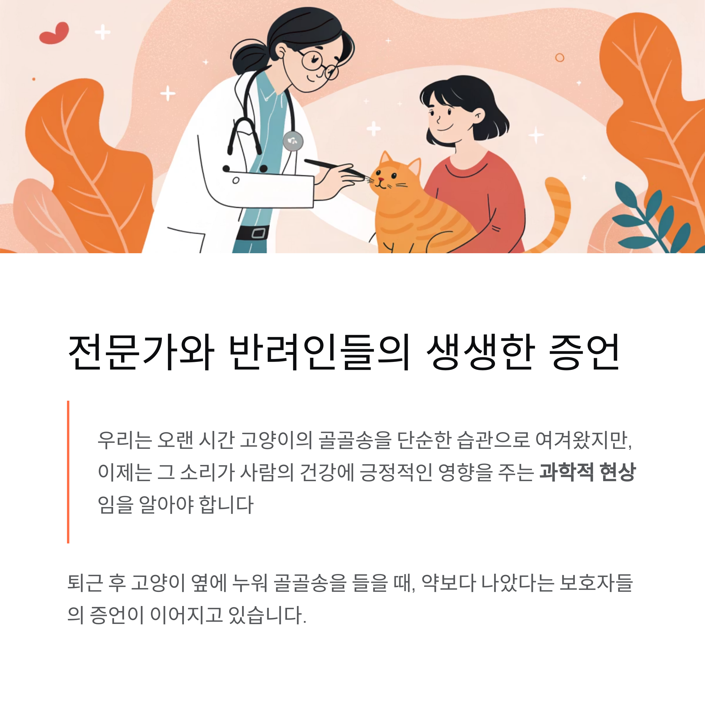 한 수의학 연구자의 말처럼, 골골송은 인간과 동물이 만들어낸 치유의 연결고리입니다.