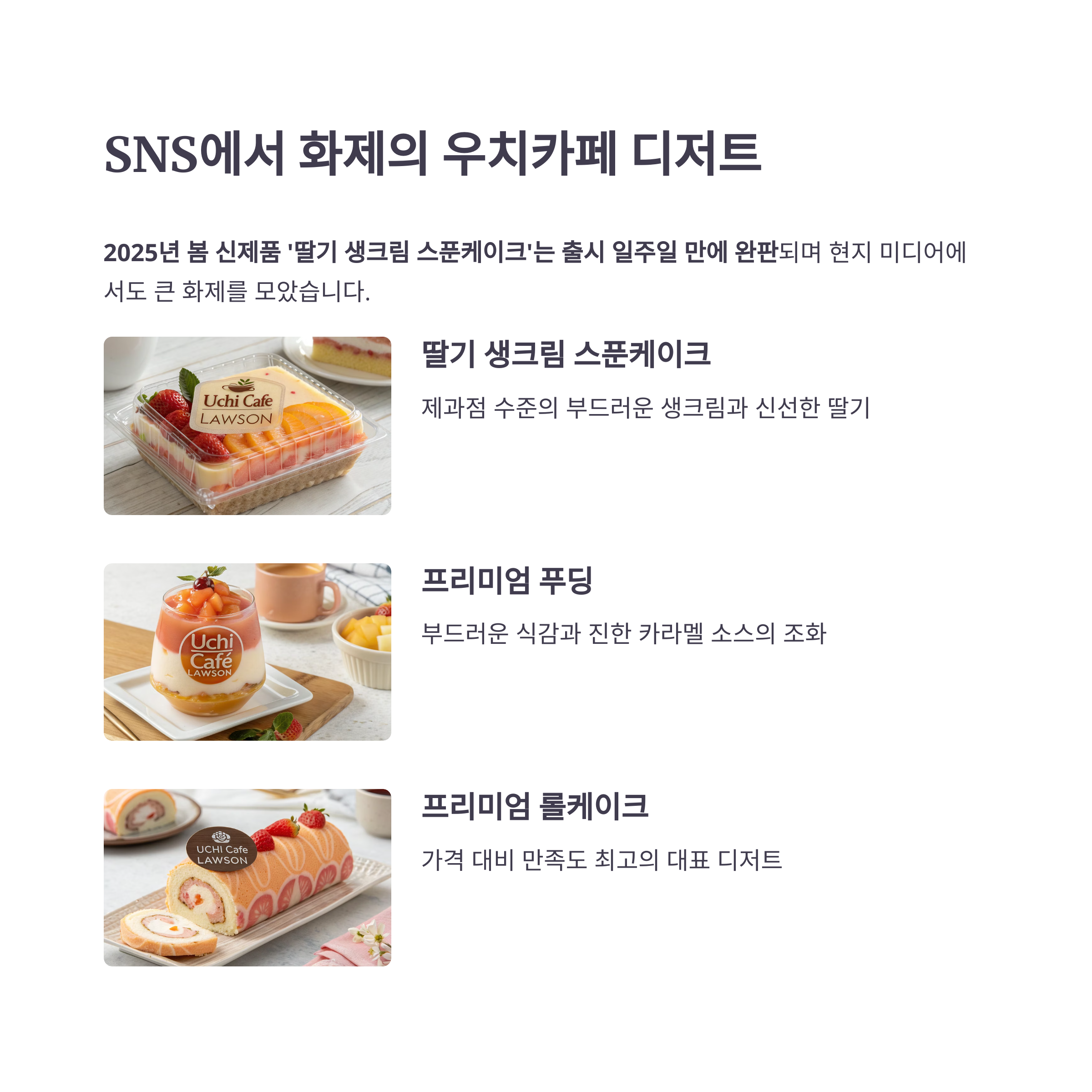 | 6 | 우치카페 디저트 | 200~350 | 180~350 | 카페 퀄리티의 디저트, SNS 인증템 |